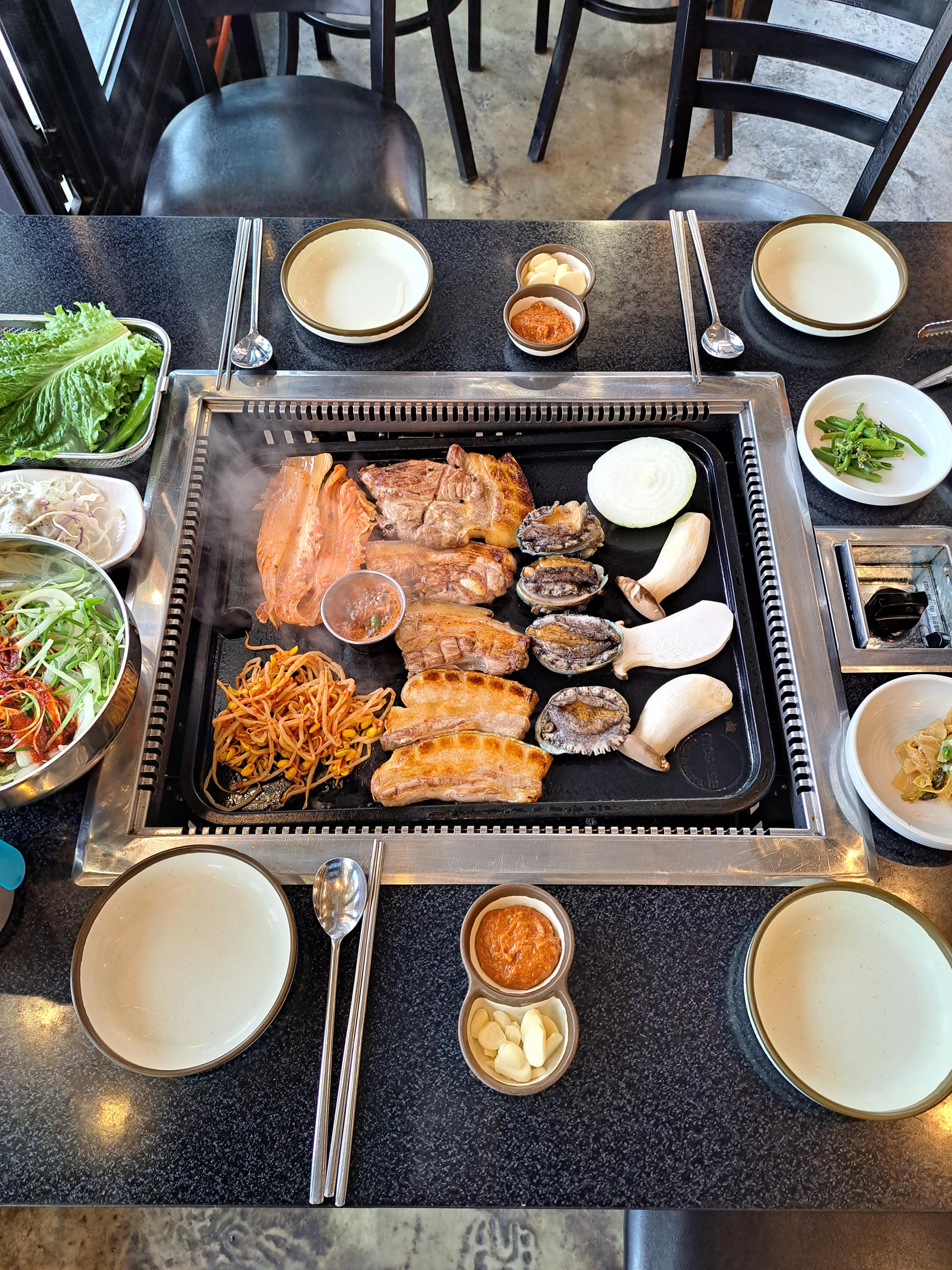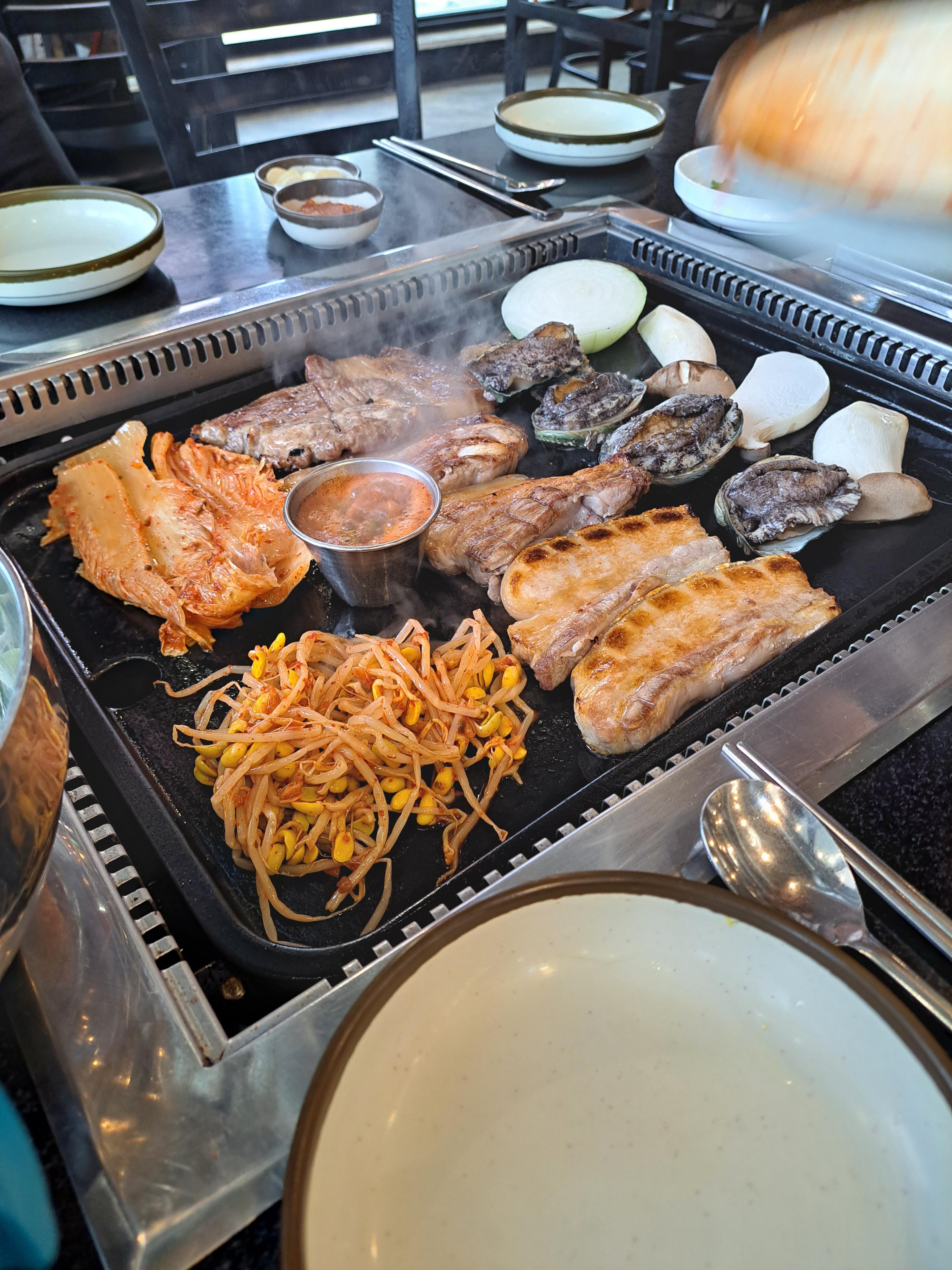 고기 마블링과 큼지막한 전복이 살아 움직이더라구요!!